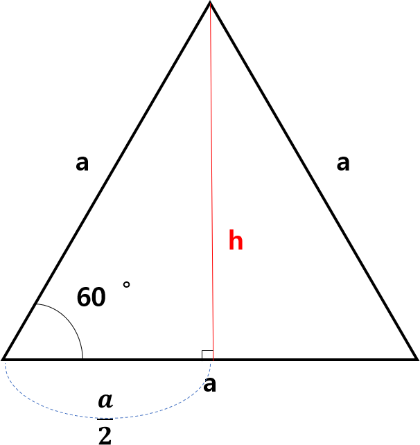 정삼각형은 세 변의 길이가 같고 세 각의 크기가 각각 60도이기 때문에 삼각함수의 특수각을 알면 쉽게 유도할 수 있다.