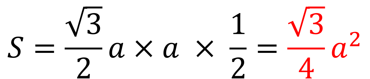 그림과 같이 정삼각형의 한 변의 길이가 a인 경우 높이와 넓이 공식을 아래와 같이 표현할 수 있다.