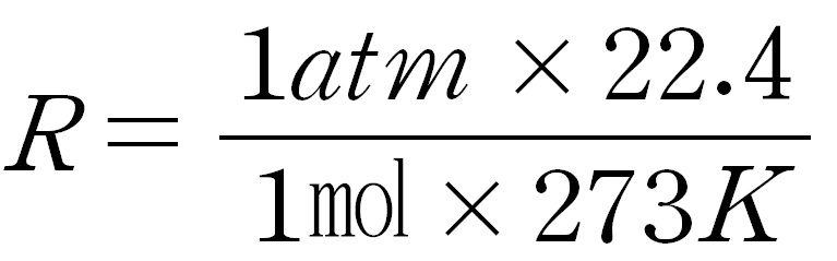 여기에서 T : 0℃, P : 1 atm, V : 22.4ℓ 를 대입해보자. 그전에 T=0℃는 절대온도 단위로 고쳐서 T = 273K를 대입하자.