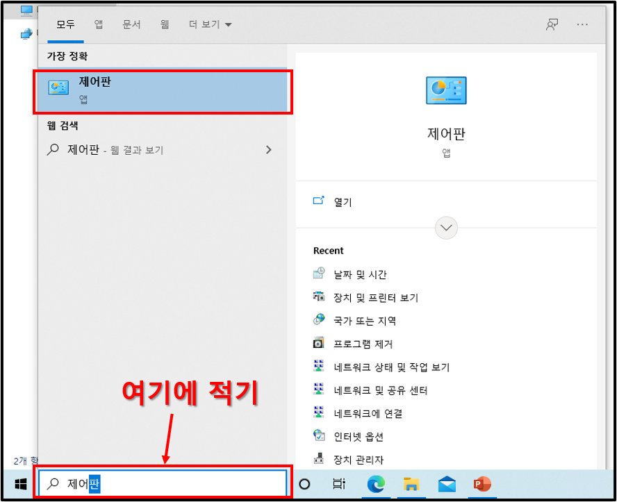 ▲들어가는 방법은 여러 가지가 있지만 사진과 같이 시작 버튼 옆에서 제어판을 검색해서 가는 것이 빠르다. 제어판이 보인다면 눌러주도록 하자.