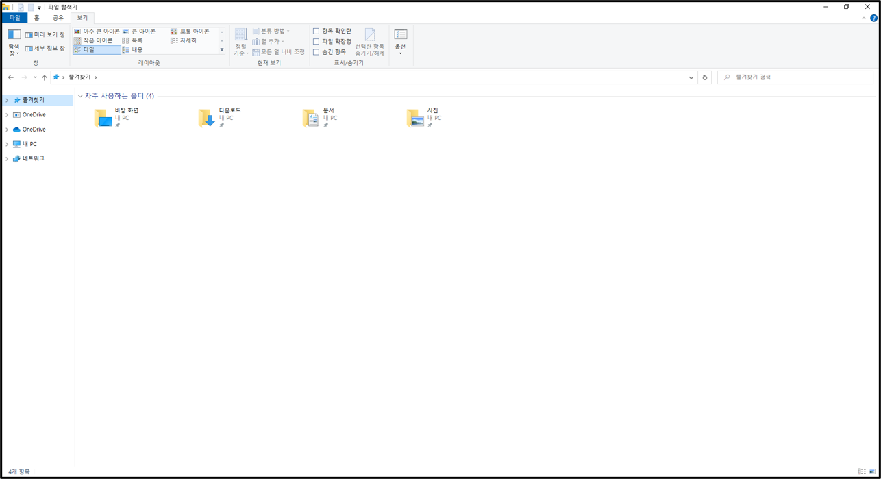▲하고 나서 다시 들어가면 최근에 사용된 폴더 및 파일이 보이지 않는 것을 확인할 수 있다. 하지만 위에서 확인할 수 있듯이 자주 사용하는 폴더는 사라지지 않으니 은밀한 파일이나 영상 등은 자주 사용하지 않는 폴더로 옮겨놓도록 하자.