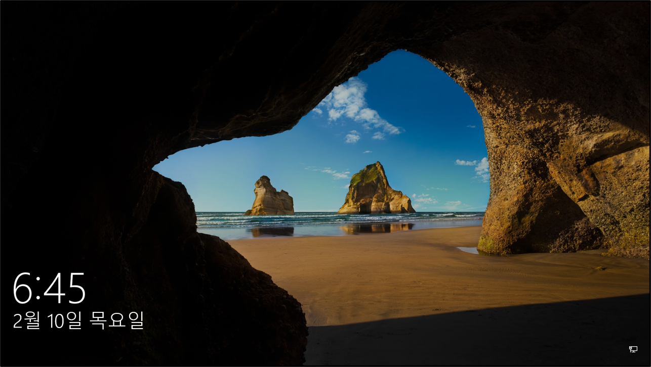 윈도우10에서는 컴퓨터를 켜놓고 키보드, 마우스 움직임 등 아무것도 안 하고 가만히 놔두면 화면이 꺼진 후 곧 절전모드로 들어가게 된다. 절전모드로 들어간 후 아무 키나 눌러 다시 컴퓨터를 작동시키면 아래의 사진과 같은 화면이 나올 것이다.
