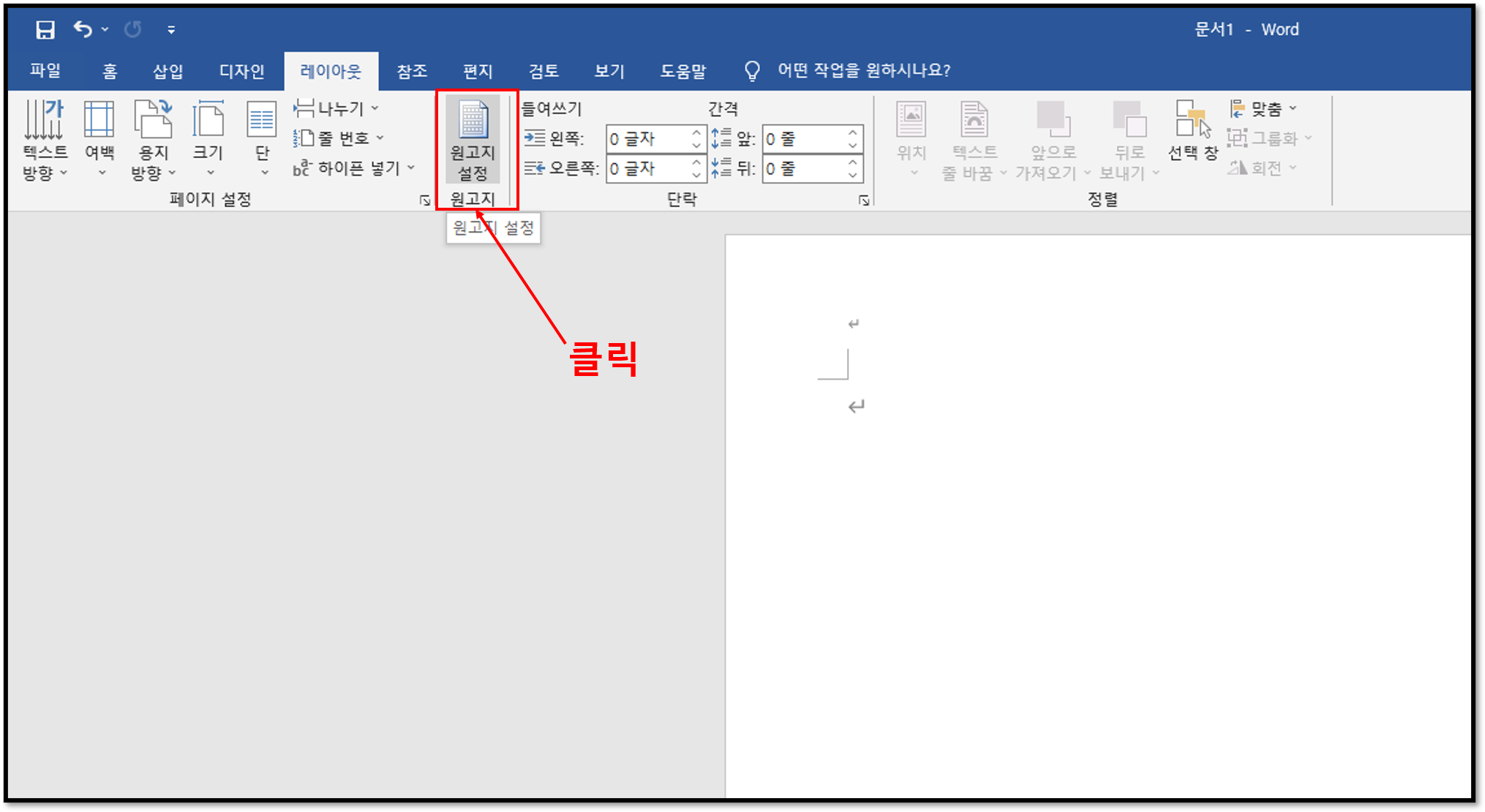 ▲우선 워드 상단에 보이는 레이아웃을 클릭하도록 하자.