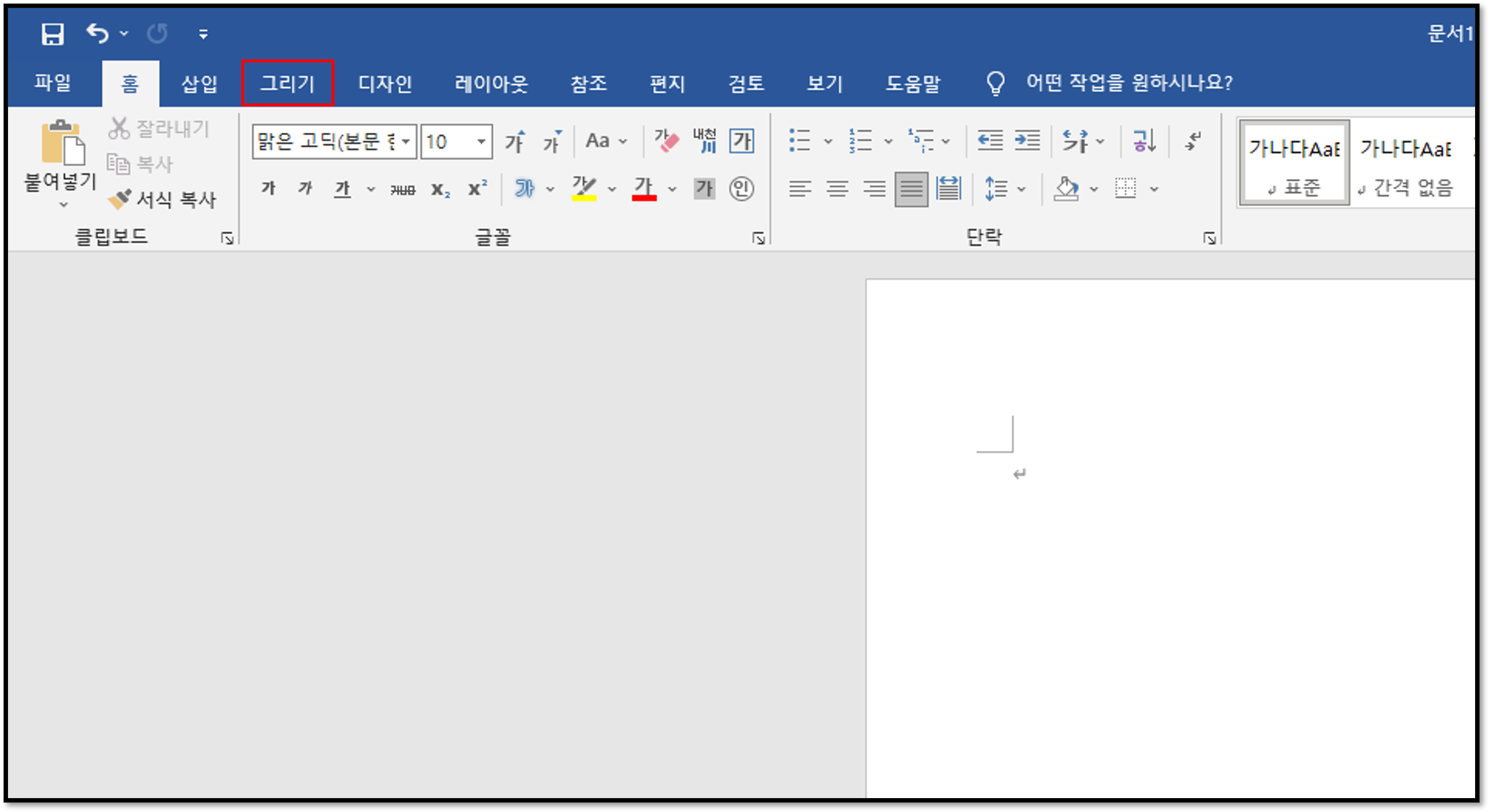 ▲위 사진처럼 새로운 리본 메뉴로 그리기가 생긴 것을 볼 수 있다. 그럼 이제 그려볼까?