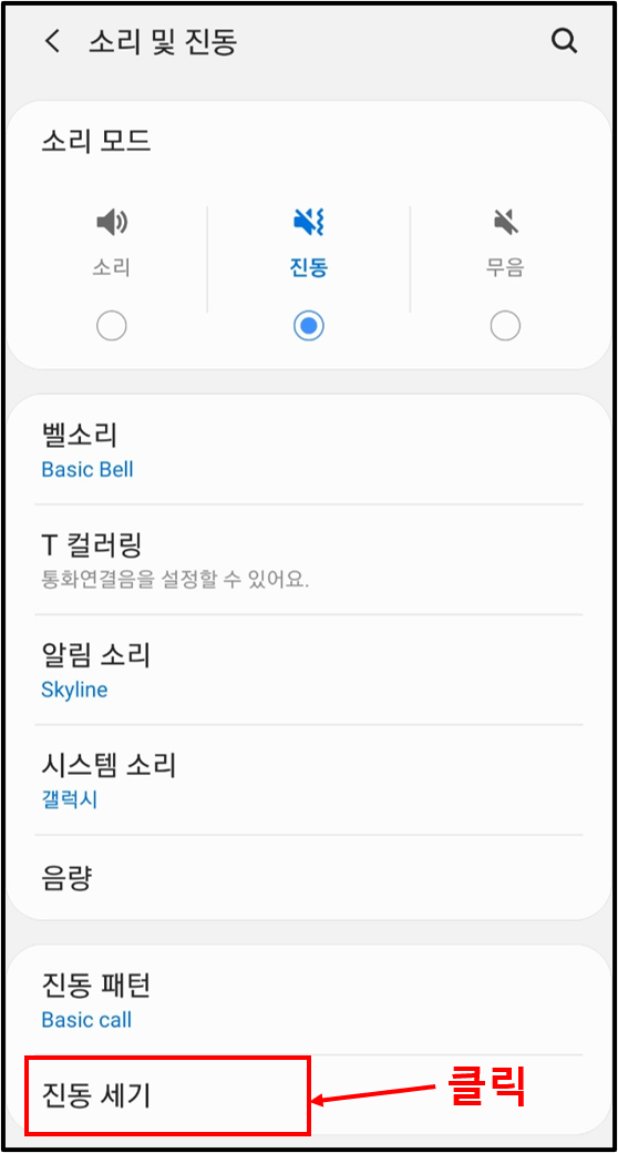 경우에 따라서 스마트폰의 진동 세기가 너무 크게 느껴지는 경우도 있다. 이번에는 진동 세기를 조절해보도록 하자.