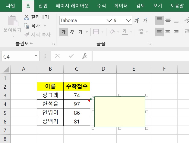 메모 삽입을 클릭하면 다음과 같은 노란색 포스트잇 같은 상자가 생긴다. 이 상자속에 적고 싶은 글을 적을 수 있다.
