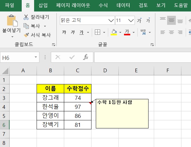 셀에서 마우스가 멀리 떨어지면 메모는 사라진다. 사실 사라지는 게 아니라 숨겨지는 것이다.