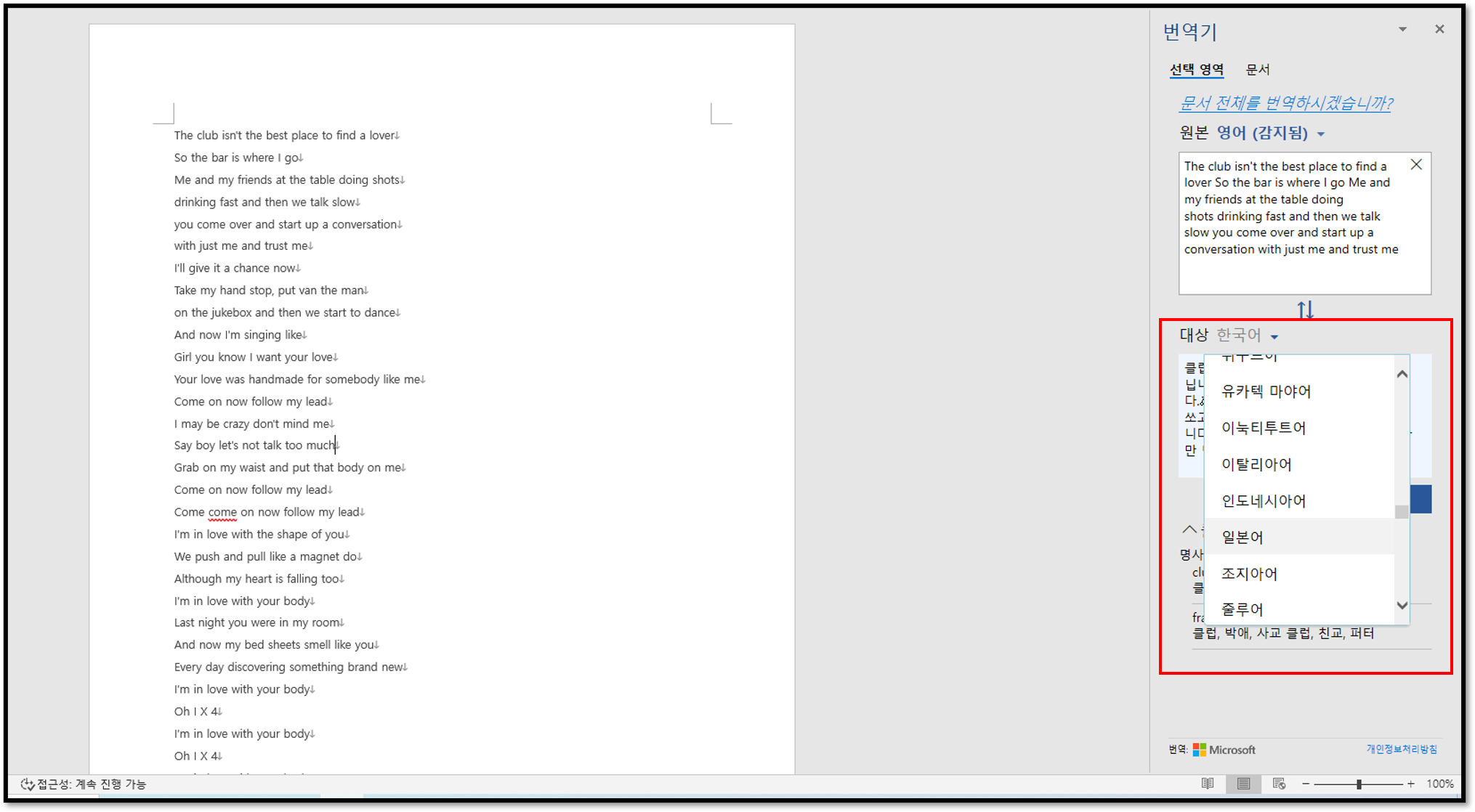 | 워드 문서 번역하기 |