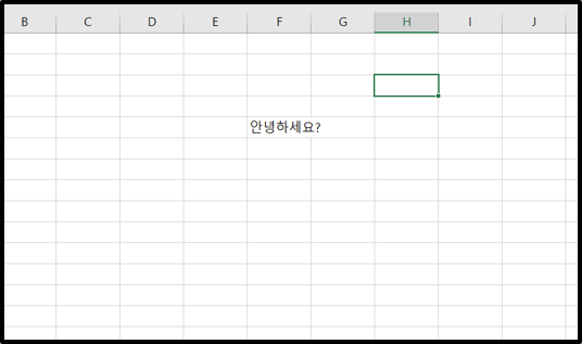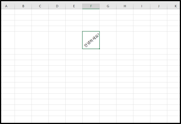 임의의 셀에 "안녕하세요?"라는 텍스트를 입력하였다. 이 텍스트의 방향을 바꿔보자.